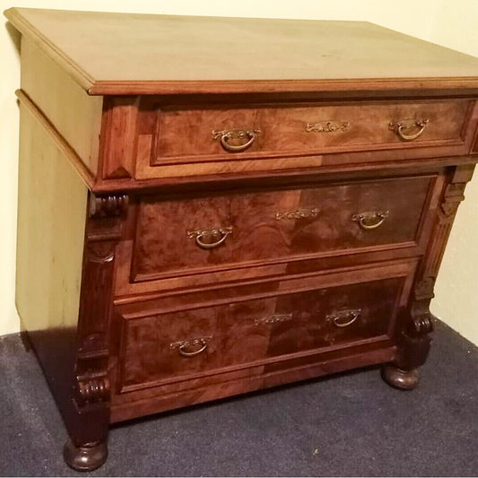 Schlichte drischübige Gründerzeit-Kommode in Nussbaum