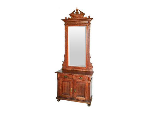 Spiegel-Kommode in Eiche mit Sprenggiebel